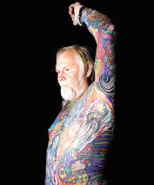 After a family crisis, 47-year-old Don McClintock of Christchurch, New Zealand – a man who “never liked tattoos” – had the names of his kids tattooed on his neck. Then, in an attempt to change his family’s luck, into his skin went an indelible Lady Luck. Now, seven years later, the only areas of McClintock’s body not covered in Down Under Tattoo artist Steve Johnson’s work are his face, the backs of his feet and some small areas of his inner thighs.