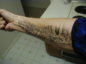 Piqued, I did some more online snooping and discovered this lengthy, interesting article on the very same subject as well as something referred to as the “alternative Christian movement,” which involves Christian youth expressing their devout faith through tattoo art and whatnot. “…kids are so full on faith on the inside they just want to find somewhere to place it,” Jayme Whitaker, president of the Christian Tattoo Association, said. “Almost like a declaration of their independence in Christ.”