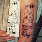 The over the top imagery of Manga is inspiring in it’s ability to convey a wide variety of emotions and if nothing else tattoos are an emotionally inspired art form. You can see a painting by a old master and think, “Yeah that’s nice.”, with all the emotion of a scientist examining a lab rat. You can not look at a tattoo with out it pulling some type of emotion out of you. Tattoos are designed to illicit emotional responses, and so is Manga. Put the two together and you have all the makings of one hell of a cool tat.