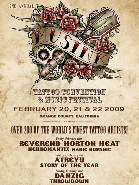 MusInk debuted last year in Orange County and was successful with over fifteen thousand people attending the three-day affair. Social Distortion and MOTÖRHEAD were originally headliners for this year’s festival but pulled out when MusInk announced it no longer had plans to tour. Instead look for Danzig, Reverend Horton Heat and Atreyu to rock the festival’s stage.