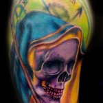 Know a great tattoo artist who is good at skull tattoo pictures and designs? Leave a link to there skeleton tattoos in the comments and we’ll add them to Tattoo Blog!