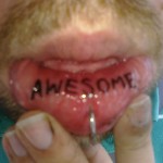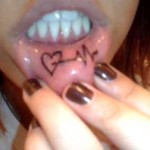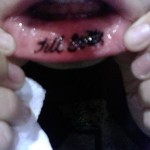 People of all ages have been getting lip tattoos on there inner lip from quite some time, here is a random sample of the words, pictures, and craziness that people have been getting tattooed on there inner lip. Fore the freshly turned 18, the lip tattoo allows for an almost impossible to get “caught” tattoo, because there is no need to hide it, because the only people who actually see your inner lip are those you show it to… it won’t just slip out. Word to the warning the mouth is a very sensitive spot for infection, I wouldn’t recommend getting a lip tattoo out of somebodies van. Want your tattoo listed? Just Leave a Comment or Upload it to the site